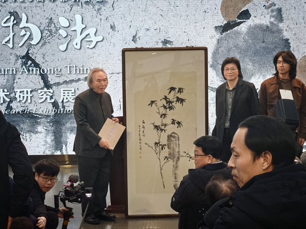 在开幕式的捐赠环节中,霍春阳将五幅绘画作品捐献给学校美术馆永久收藏。天津美术学院美术馆副馆长李旭飞接受捐赠,并向霍春阳颁发捐赠证书。展览全面展现了霍春阳近二十年来在艺术语言与哲学思考上的持续探索。展览通过“神思”“格物”“游艺”“薪传”四个章节,层层深入霍春阳的艺术世界与教育实践。向观众全面展示其艺术发展之路与在传统艺术传承上作出的重要贡献。